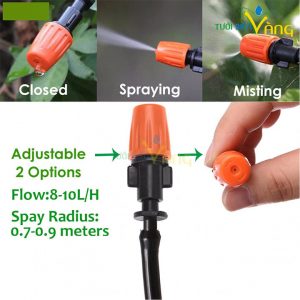 Chế độ phun xịt thuốc (Spraying), chế độ phun sương (Misting) và khóa đầu béc không cho nước ra (Close)